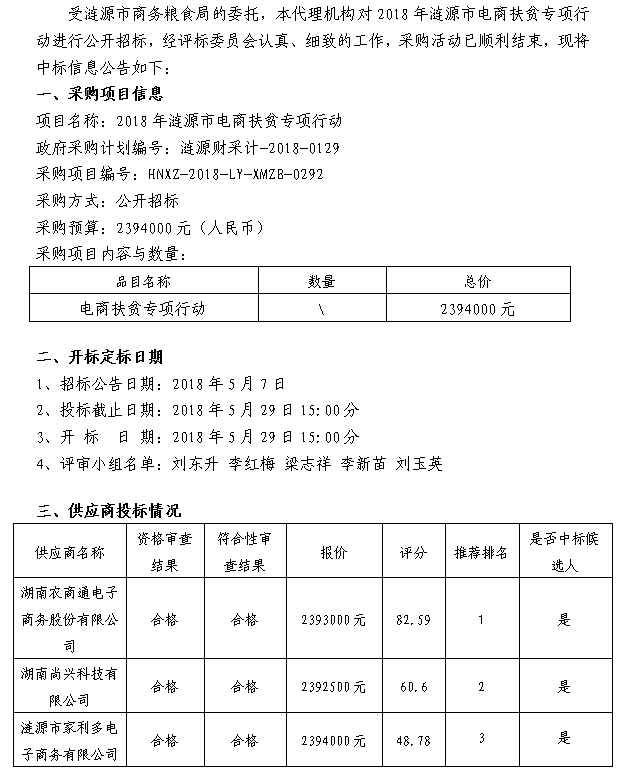 2018年漣源市電商扶貧專項行動中標(biāo)結(jié)果公告