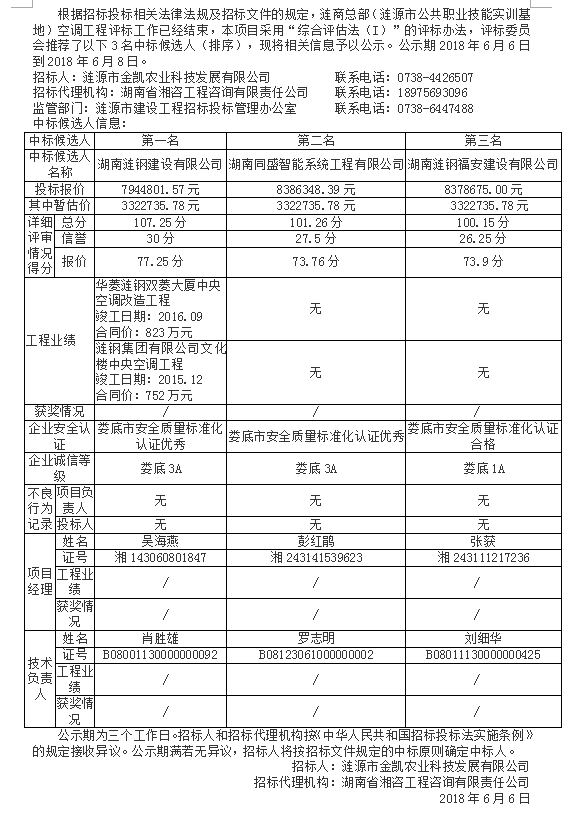 漣商總部(漣源市公共職業(yè)技能實訓基地)空調工程中標候選人公示