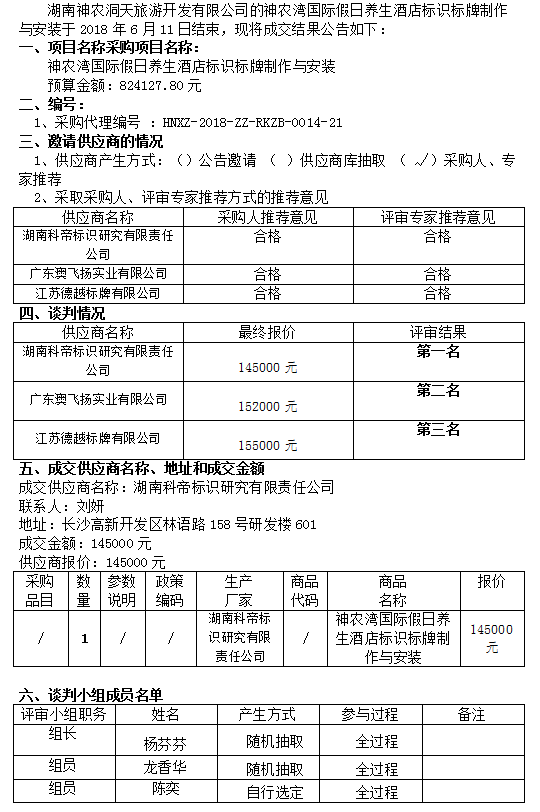 神農(nóng)灣國際假日養(yǎng)生酒店標(biāo)識標(biāo)牌制作與安裝 競爭性談判成交公告