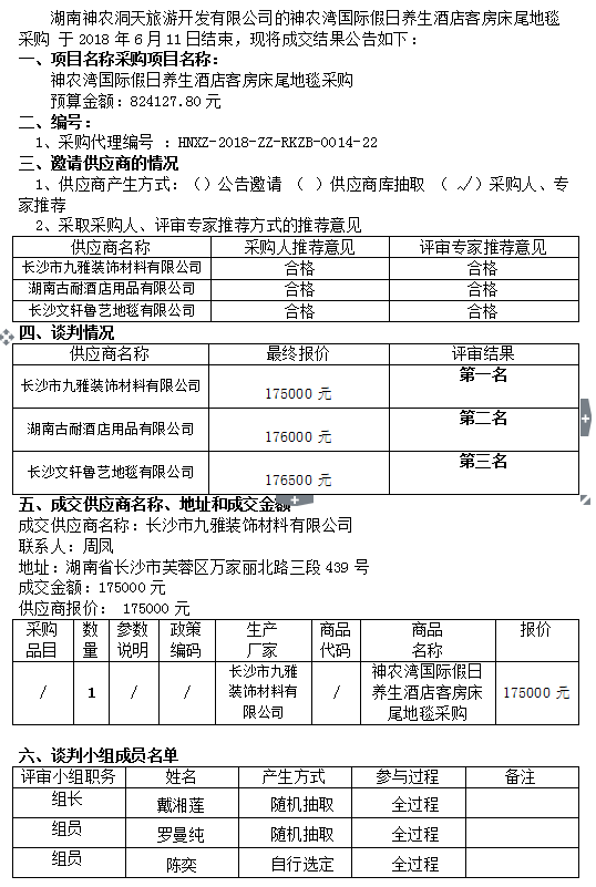 神農(nóng)灣國際假日養(yǎng)生酒店客房床尾地毯采購  競爭性談判成交公告