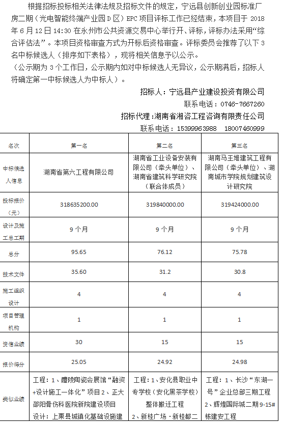 寧遠(yuǎn)縣創(chuàng)新創(chuàng)業(yè)園標(biāo)準(zhǔn)廠房二期(光電智能終端產(chǎn)業(yè)園D區(qū))EPC項(xiàng)目中標(biāo)候選人公示