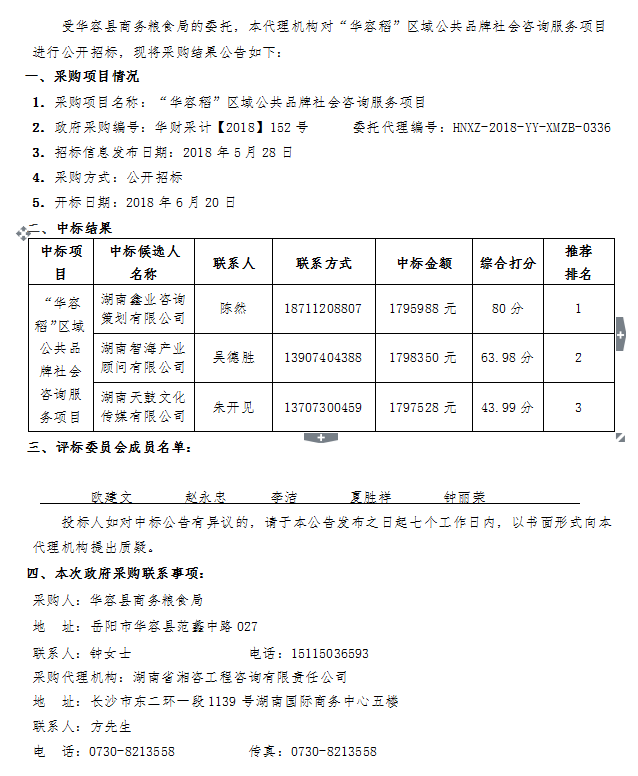 “華容稻”區(qū)域公共品牌社會咨詢服務(wù)項目公開招標(biāo)中標(biāo)公告