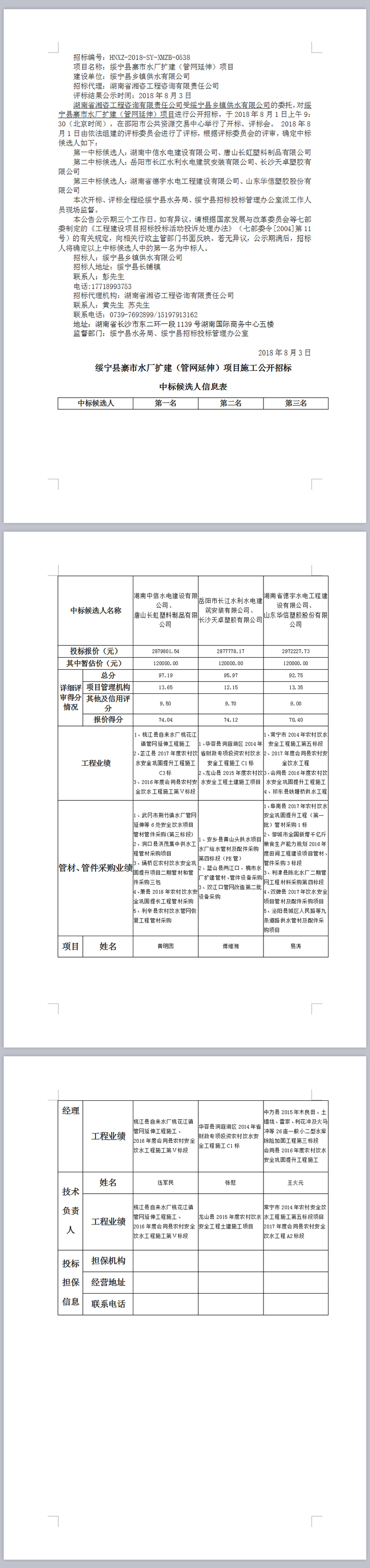 綏寧縣寨市水廠擴(kuò)建(管網(wǎng)延伸)項(xiàng)目 中標(biāo)候選人公示