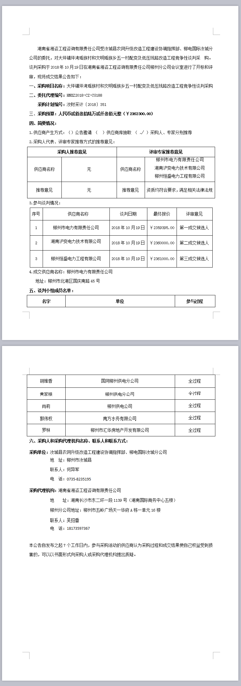 大坪鎮(zhèn)坪灣瑤族村和文明瑤族鄉(xiāng)五一村配變及低壓線路改造工程競爭性談判采購成交公告