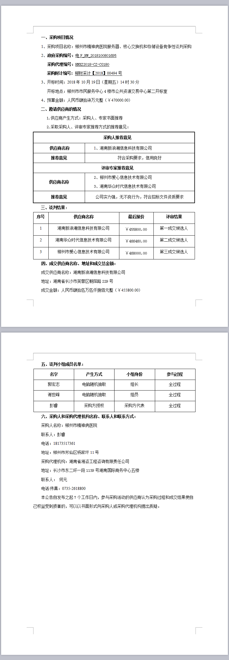 郴州市精神病醫(yī)院服務(wù)器、核心交換機(jī)和存儲(chǔ)設(shè)備競爭性談判采購成交公告