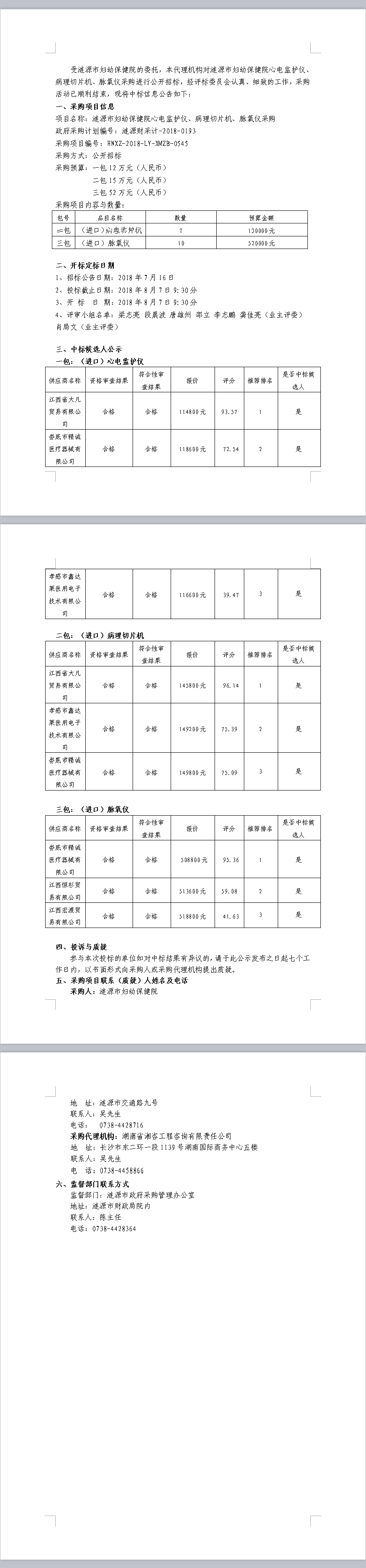 漣源市婦幼保健院心電監(jiān)護(hù)儀、病理切片機(jī)、脈氧儀采購(gòu) 中標(biāo)結(jié)果公告