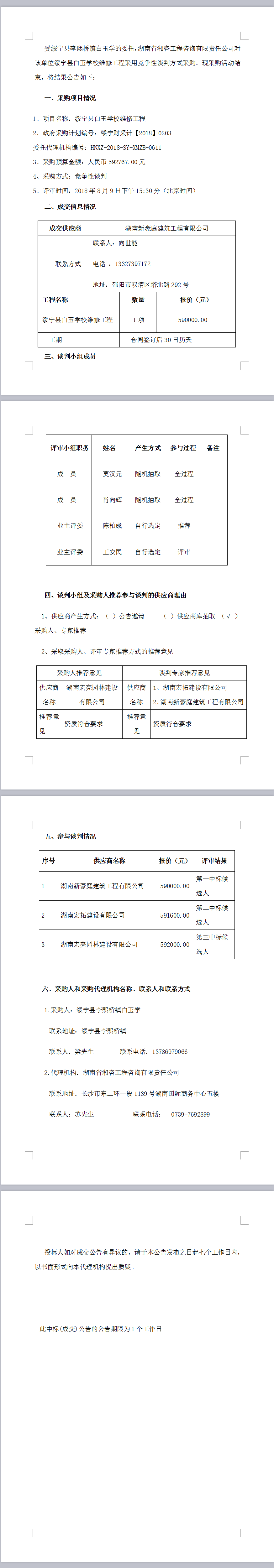 綏寧縣白玉學(xué)校維修工程談判成交公告