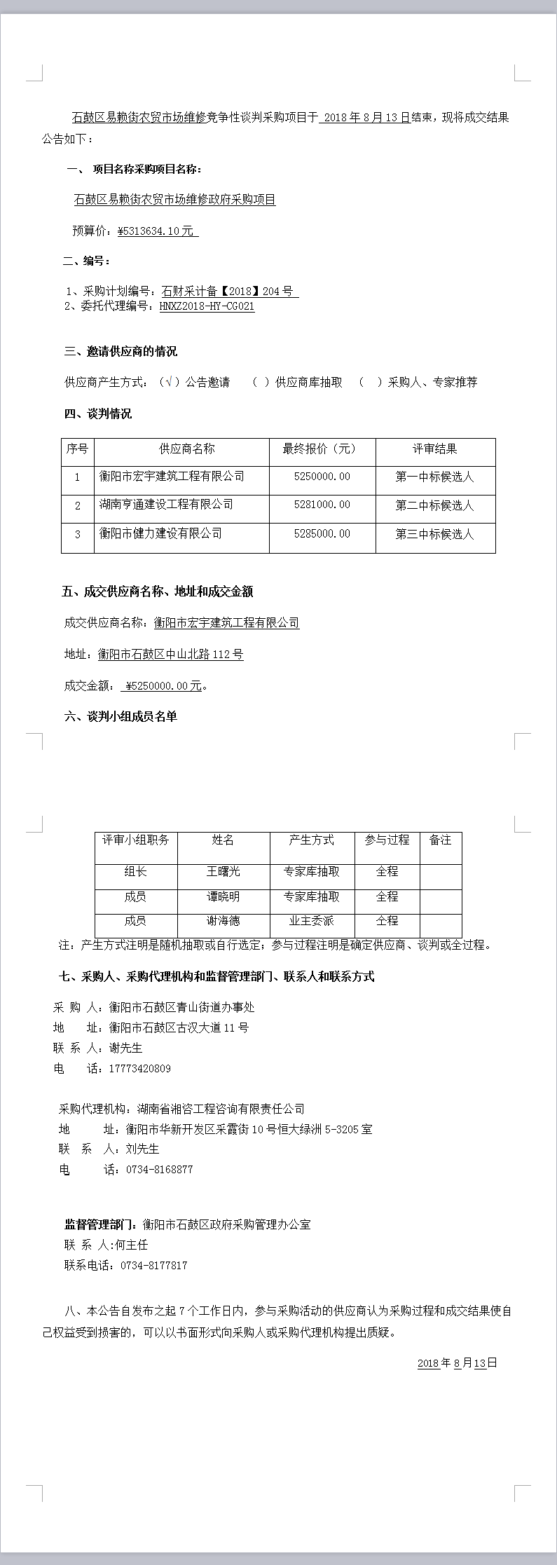 石鼓區(qū)易賴街農(nóng)貿(mào)市場維修政府采購項(xiàng)目競爭性談判成交結(jié)果公告