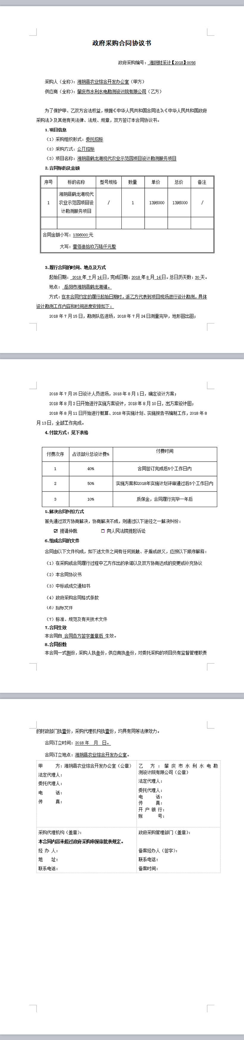 湘陰縣鶴龍湖現(xiàn)代農(nóng)業(yè)示范園項目設計勘測服務項目政府采購合同協(xié)議書