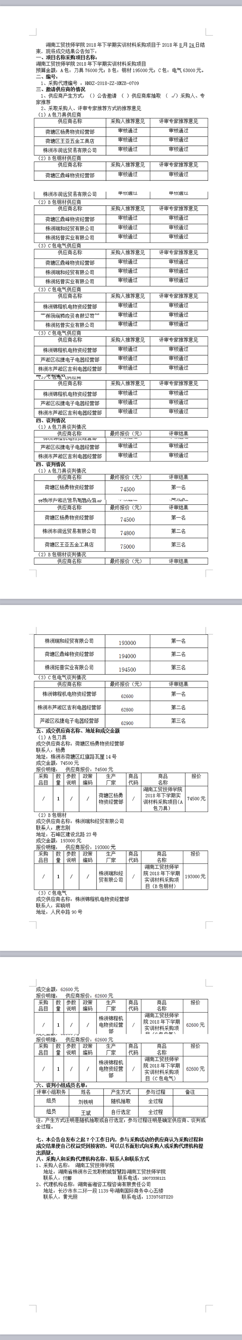湖南工貿(mào)技師學(xué)院2018年下學(xué)期實(shí)訓(xùn)材料采購(gòu)項(xiàng)目競(jìng)爭(zhēng)性談判成交公告