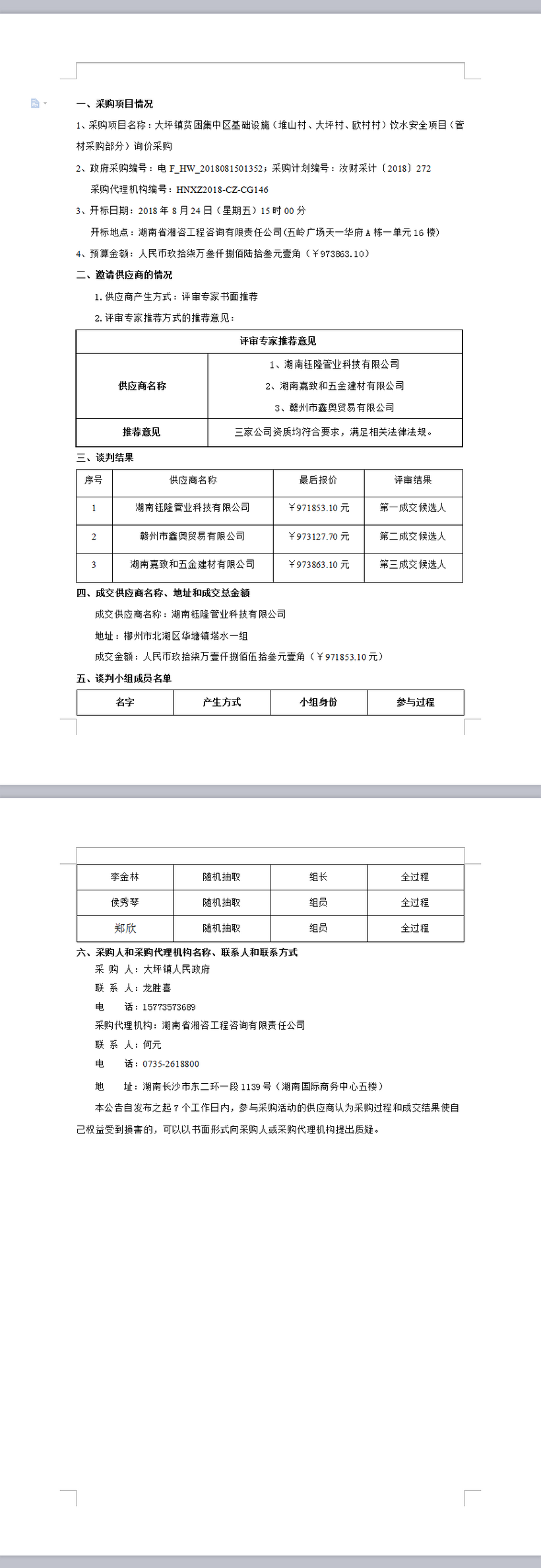 大坪鎮(zhèn)貧困集中區(qū)基礎(chǔ)設(shè)施(堆山村、大坪村、歐村村)飲水安全項(xiàng)目(管材采購部分)詢價(jià)采購成交公告