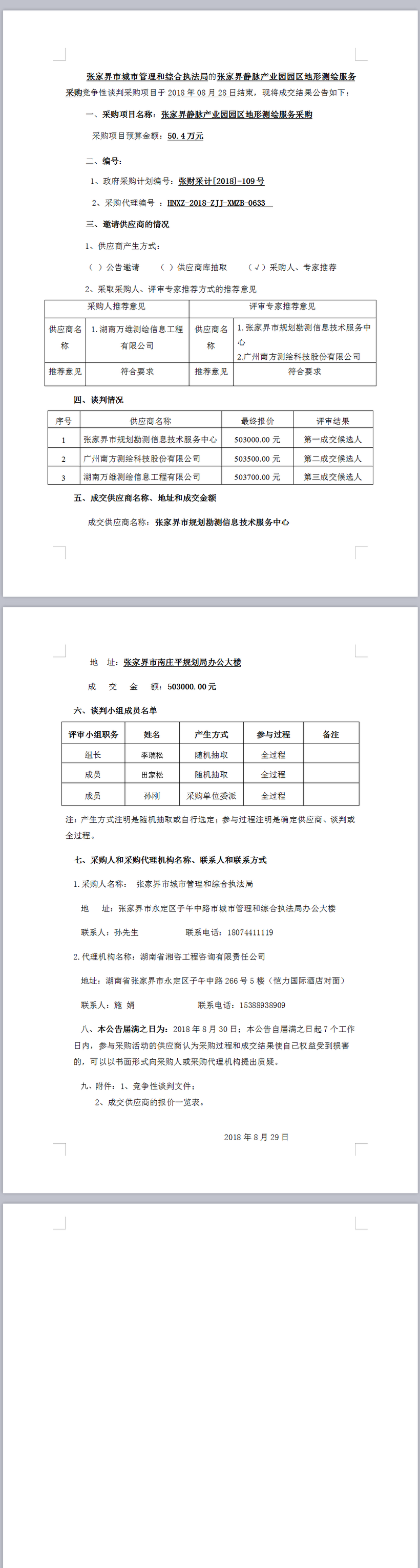 張家界靜脈產(chǎn)業(yè)園園區(qū)地形測(cè)繪服務(wù)采購(gòu)談判成交公告