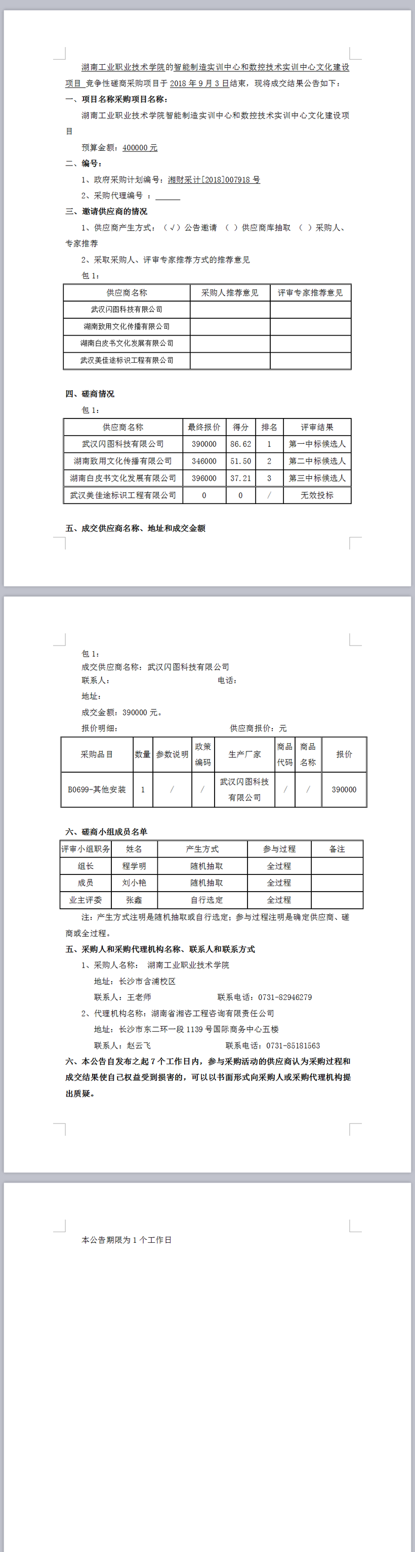 湖南工業(yè)職業(yè)技術(shù)學(xué)院智能制造實訓(xùn)中心和數(shù)控技術(shù)實訓(xùn)中心文化建設(shè)項目競爭性磋商成交公告