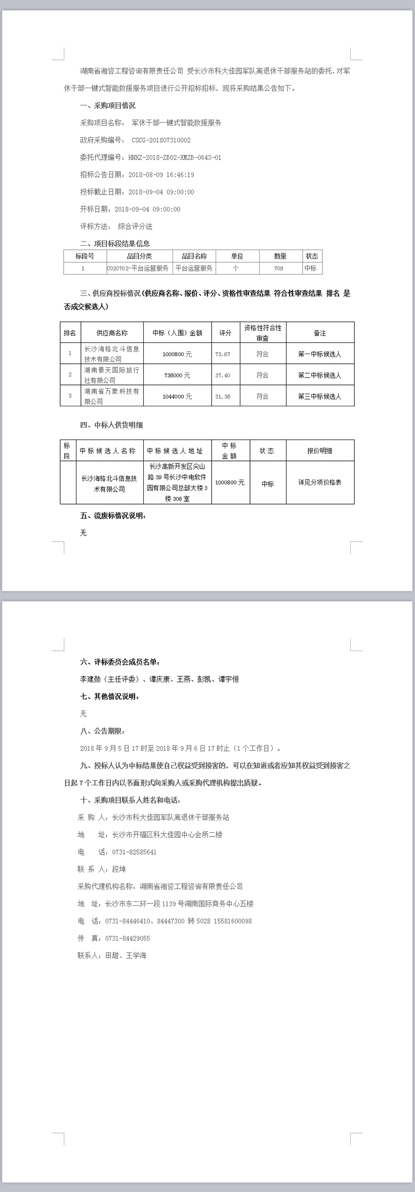 長(zhǎng)沙市科大佳園軍隊(duì)離退休干部服務(wù)站軍休干部一鍵式智能救援服務(wù)結(jié)果公告