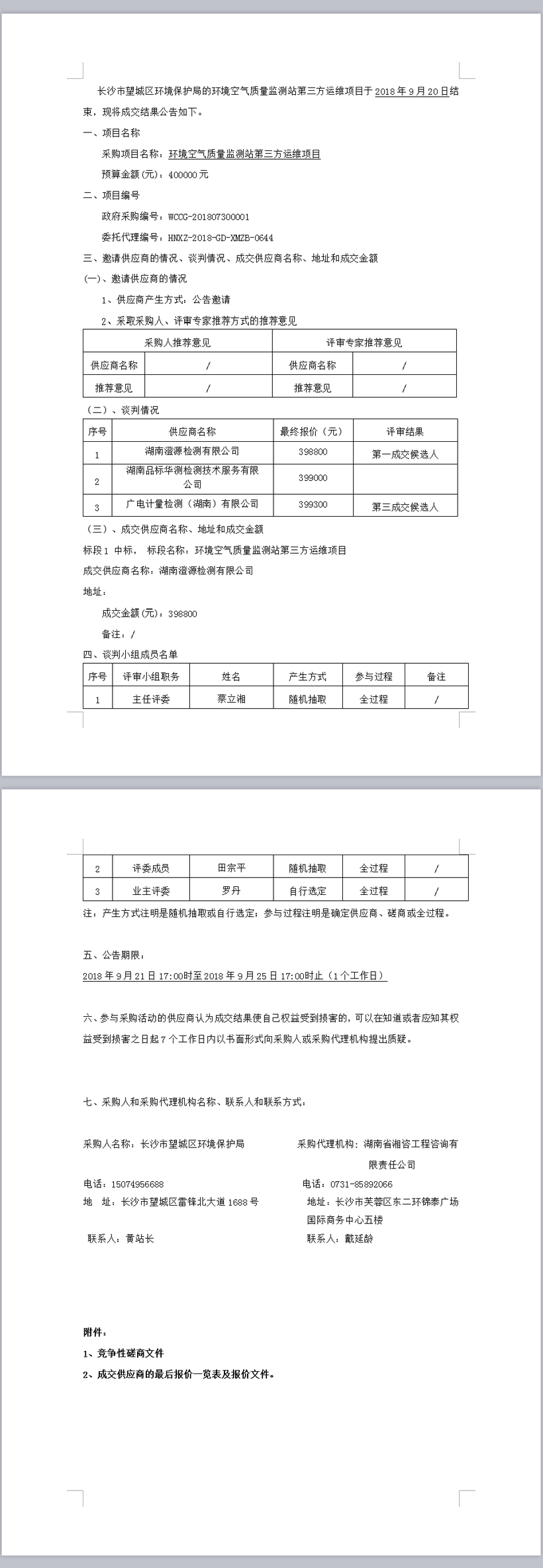 環(huán)境空氣質量監(jiān)測站第三方運維項目結果公告