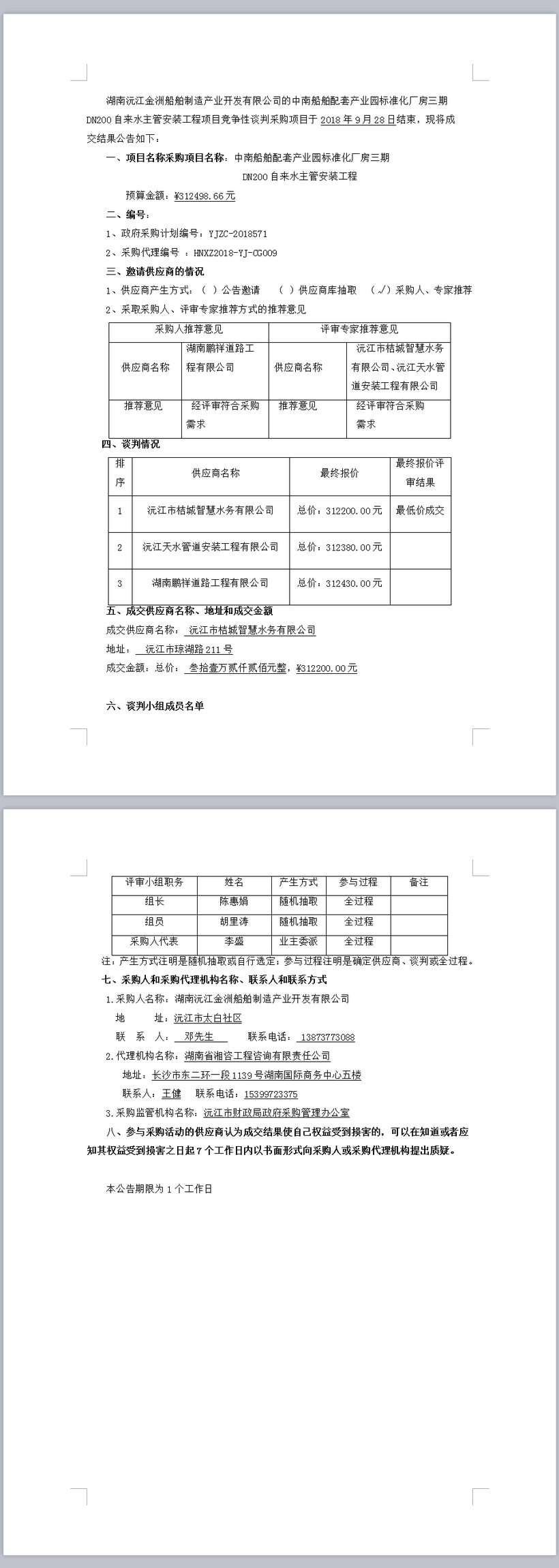 中南船舶配套產(chǎn)業(yè)園標準化廠房三期DN200自來水 主管安裝工程項目競爭性談判成交結(jié)果公告