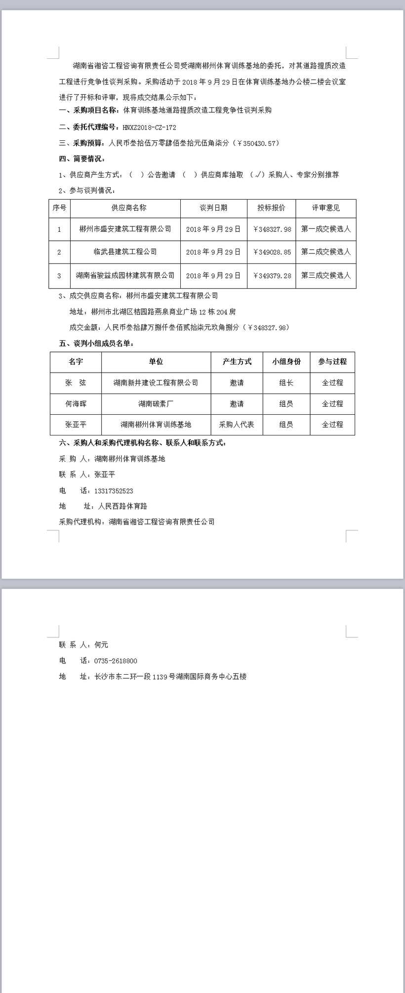 體育訓(xùn)練基地道路提質(zhì)改造工程競爭性談判采購 成交公告