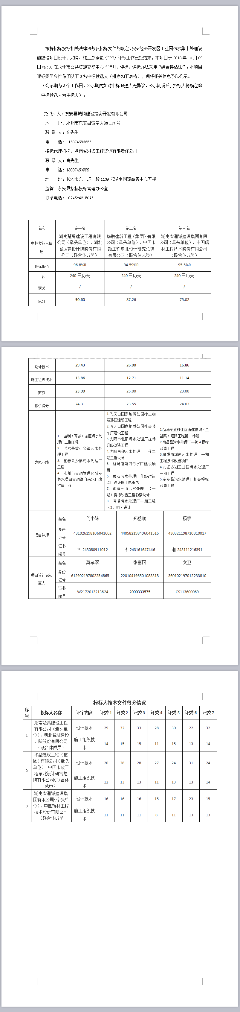 東安經(jīng)濟開發(fā)區(qū)工業(yè)園污水集中處理設施建設項目設計、采購、施工總承包(EPC)項目中標候選人公示