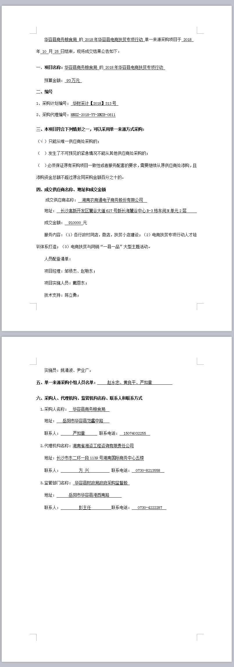 2018年華容縣電商扶貧專項行動 單一來源采購成交結(jié)果公告
