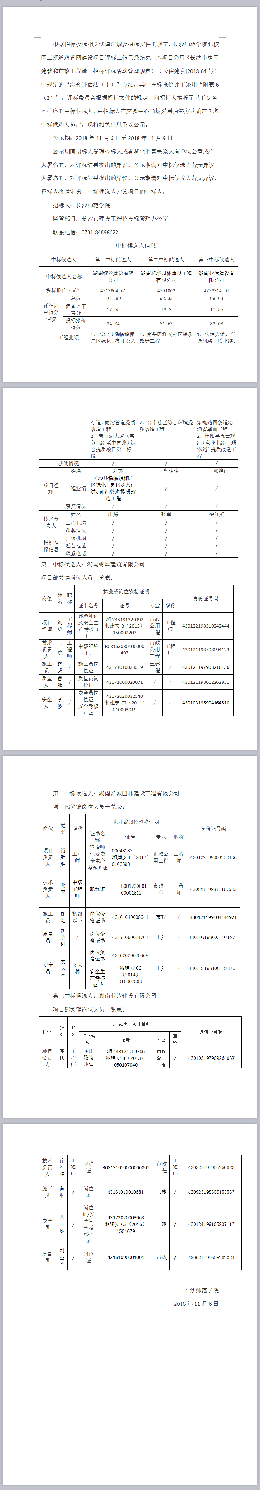 長沙師范學(xué)院北校區(qū)三期道路管網(wǎng)建設(shè)項目中標(biāo)候選人公示
