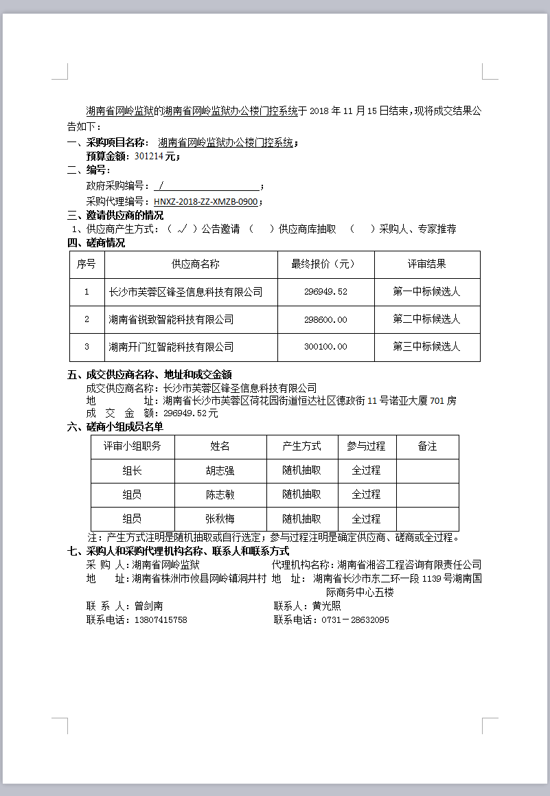 湖南省網(wǎng)嶺監(jiān)獄辦公樓門控系統(tǒng)成交結(jié)果公告