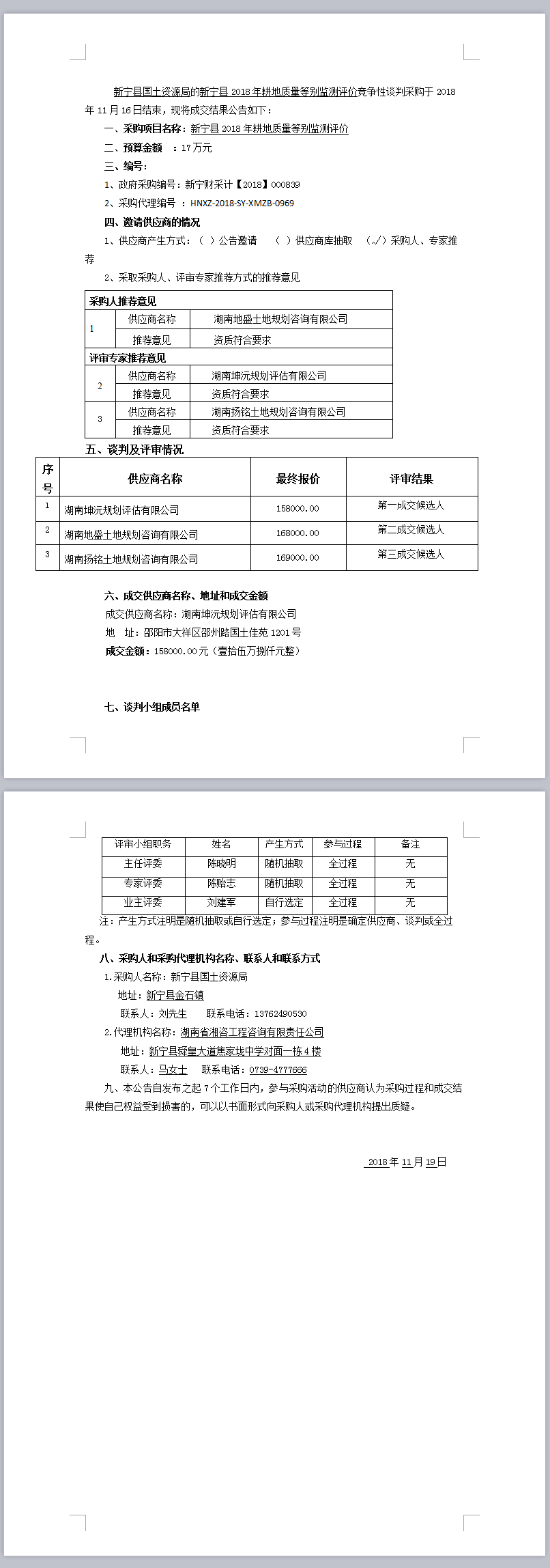 新寧縣2018年耕地質(zhì)量等別監(jiān)測(cè)評(píng)價(jià)競(jìng)爭(zhēng)性談判成交結(jié)果公告