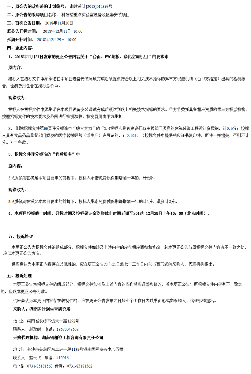 湖南省計劃生育研究所科研樓重點(diǎn)實(shí)驗(yàn)室設(shè)備及配套安裝項(xiàng)目公開招標(biāo)更正公告(2)
