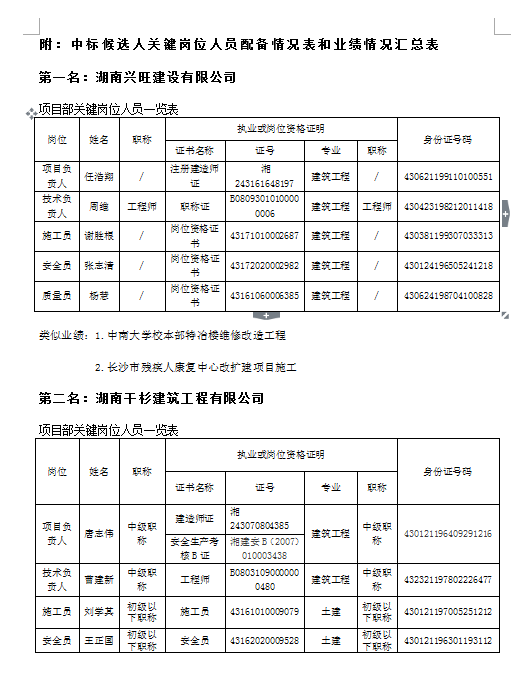 長(zhǎng)沙市第二看守所整體維修改造工程中標(biāo)候選人公示