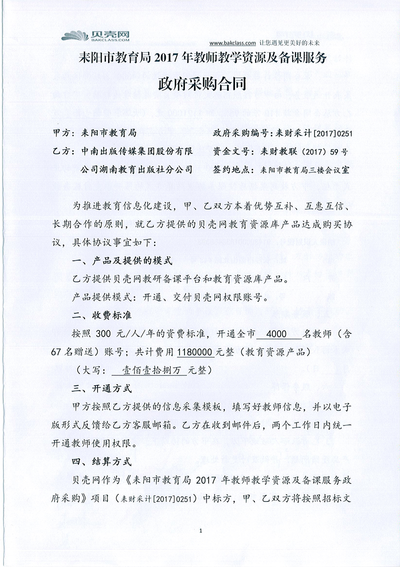 耒陽市教育局2017年教師教學(xué)資源及備課服務(wù)政府采購合同公示