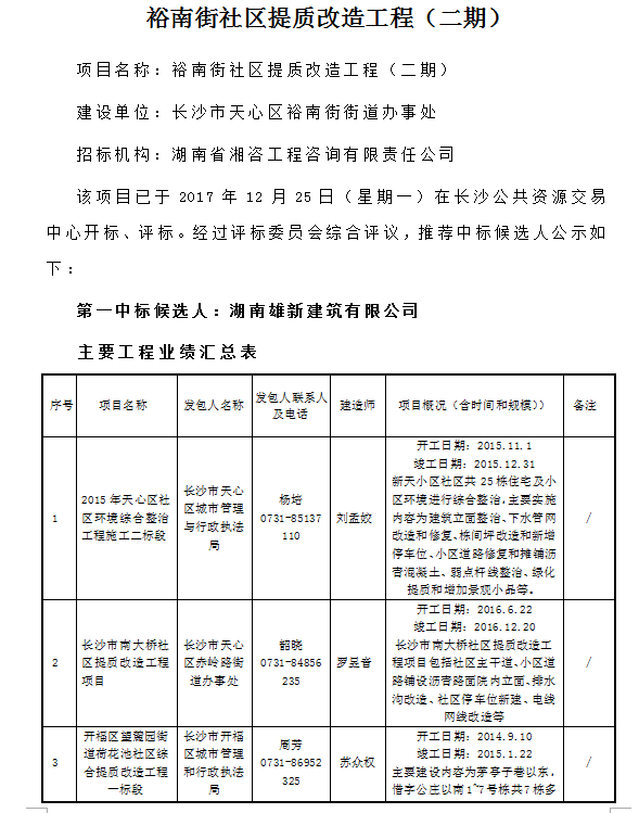 裕南街社區(qū)提質(zhì)改造工程(二期)中標候選人公示