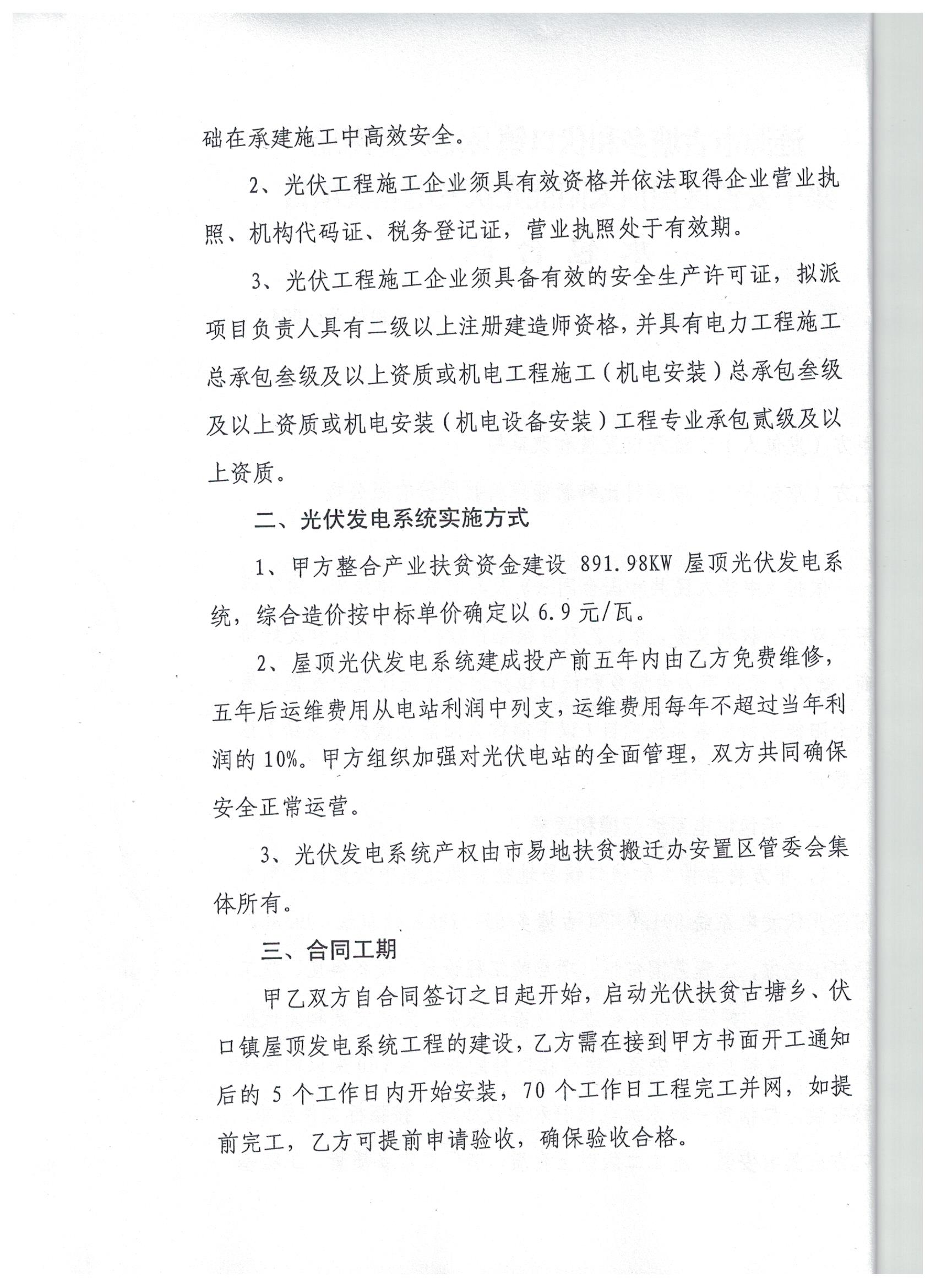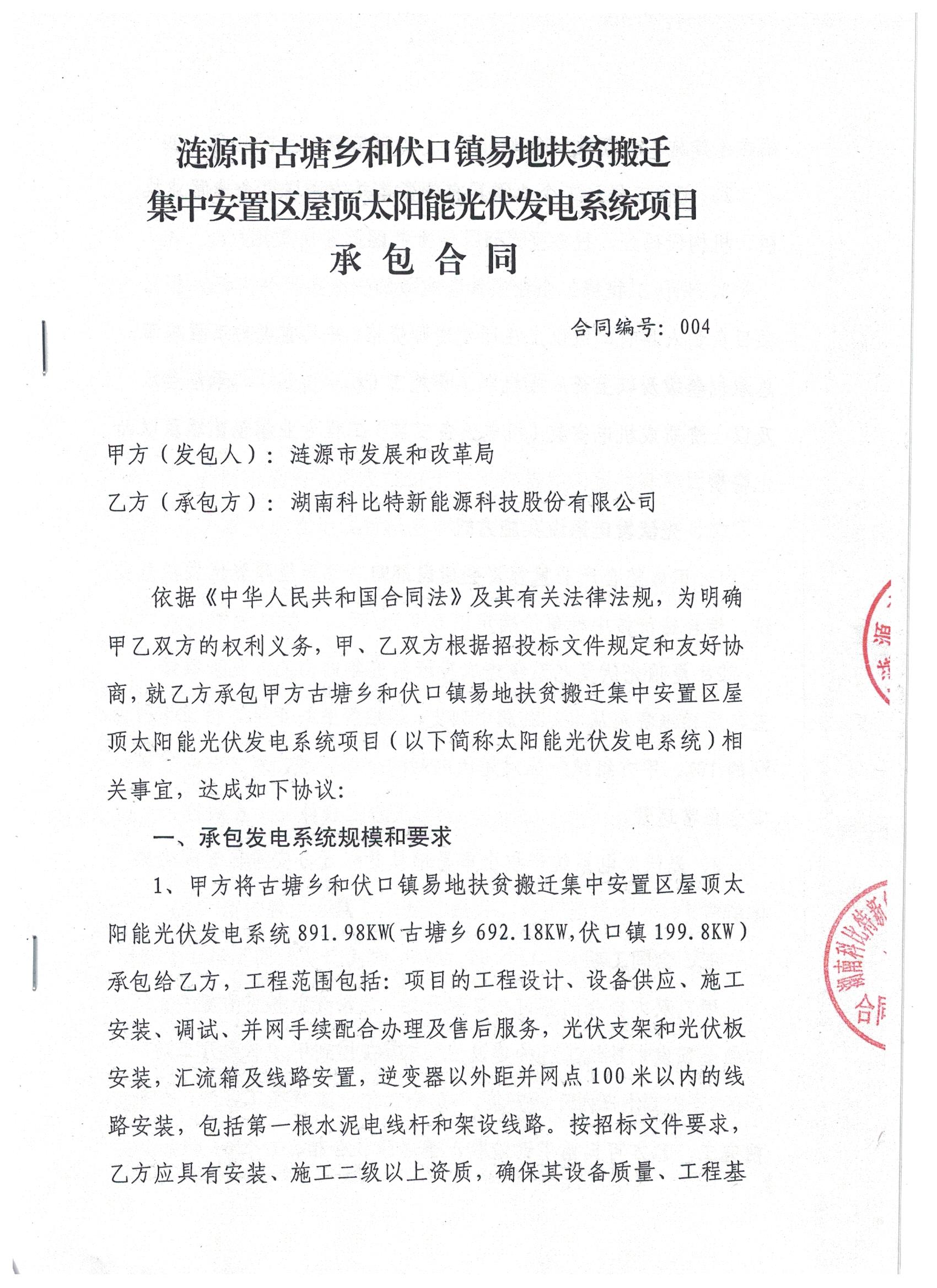 漣源市古塘鄉(xiāng)和伏口鎮(zhèn)易地扶貧搬遷集中安置區(qū)屋頂太陽(yáng)能光伏發(fā)電系統(tǒng)項(xiàng)目承包合同公示