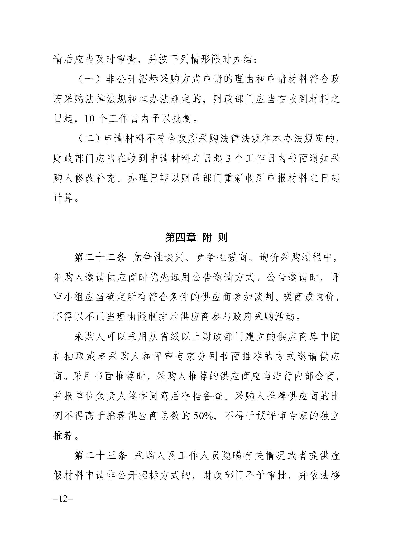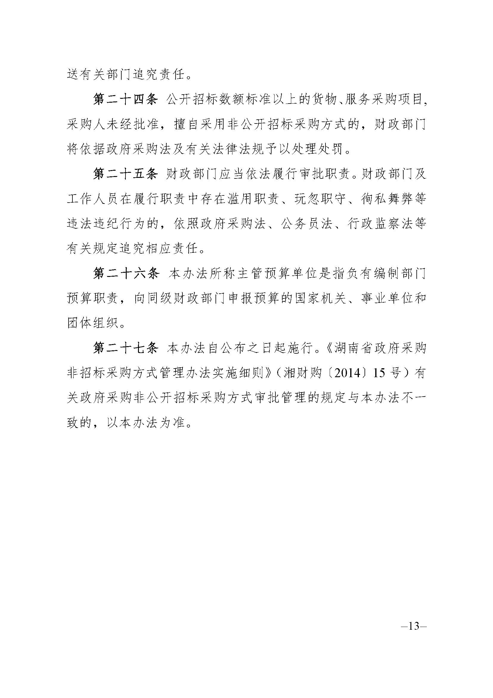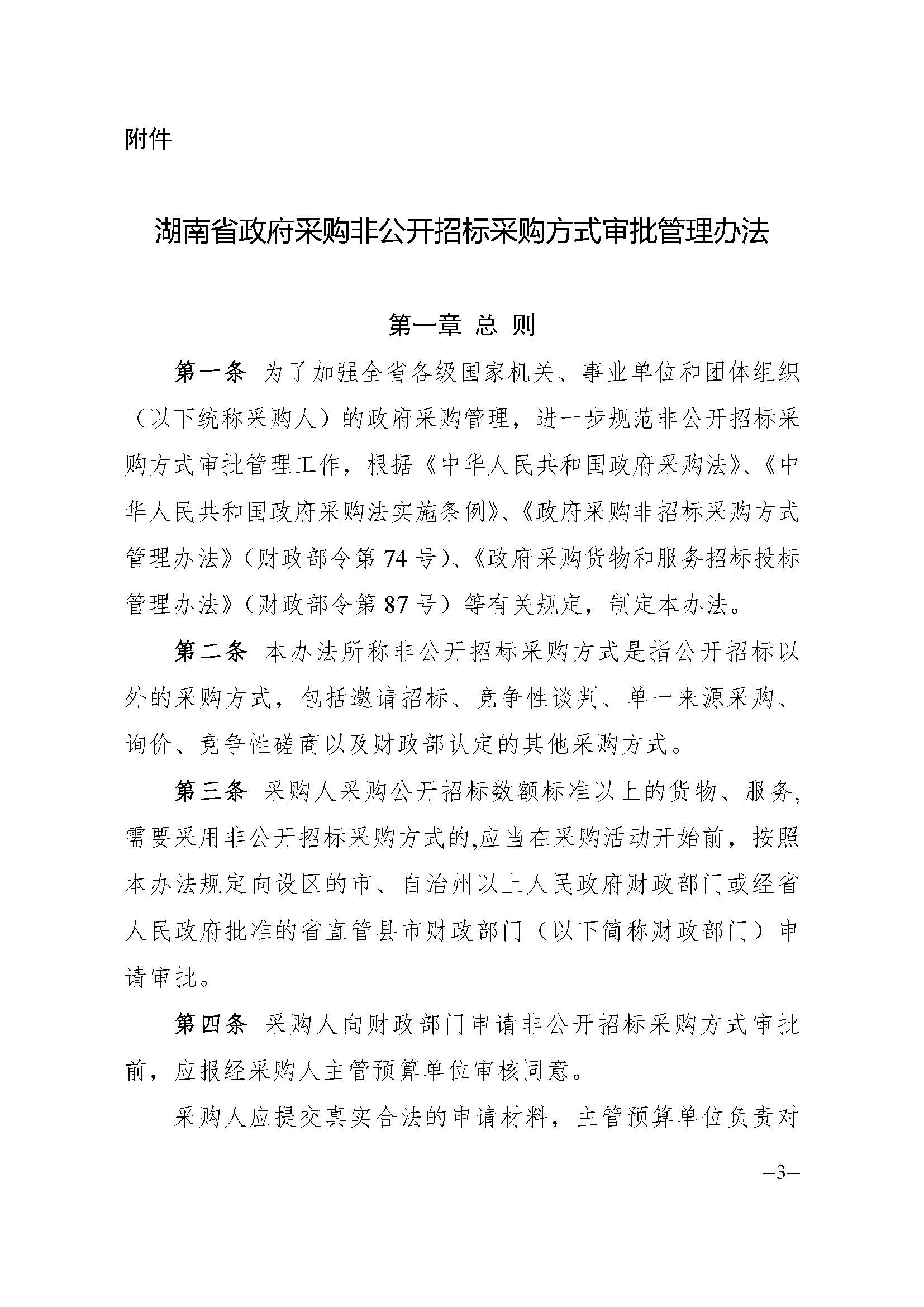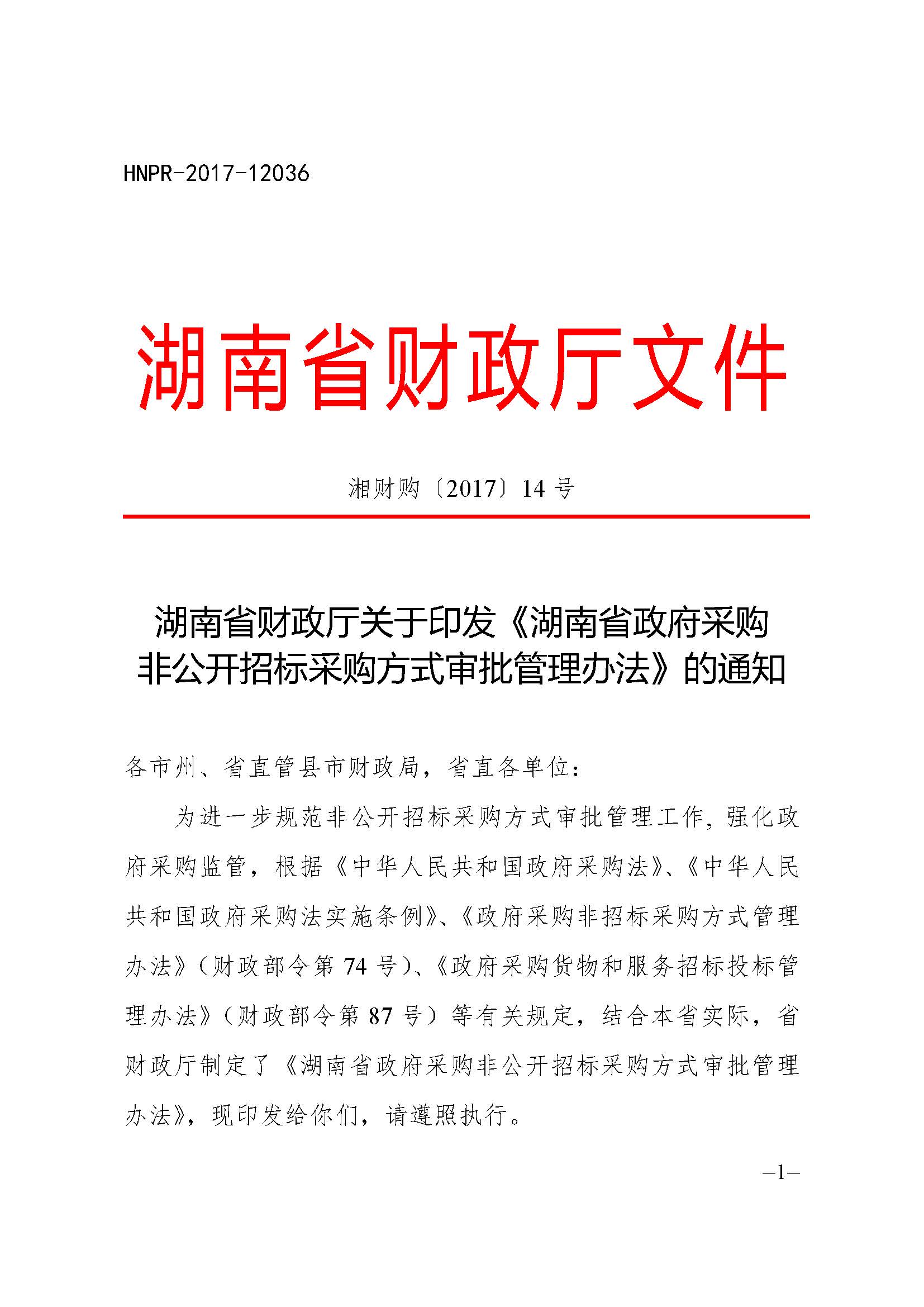 湖南省財政廳關(guān)于印發(fā)《湖南省政府采購 非公開招標采購方式審批管理辦法》的通知