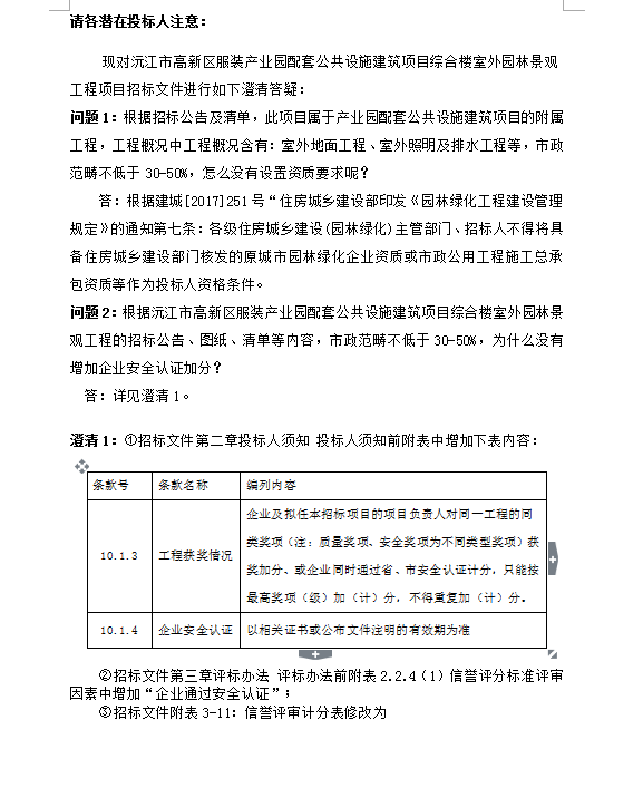沅江市高新區(qū)服裝產(chǎn)業(yè)園配套公共設(shè)施建筑項目綜合樓室外園林景觀工程澄清答疑公告