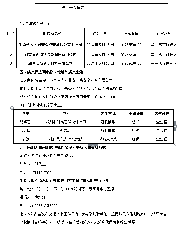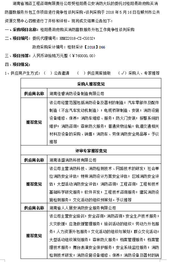桂陽縣政府購買消防宣教服務外包工作競爭性談判采購成交公告
