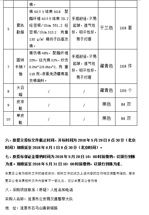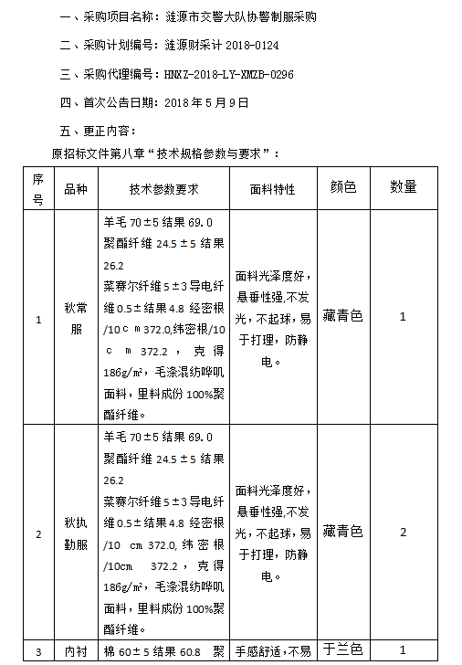 漣源市交警大隊(duì)協(xié)警制服采購(gòu)招標(biāo)更正公告